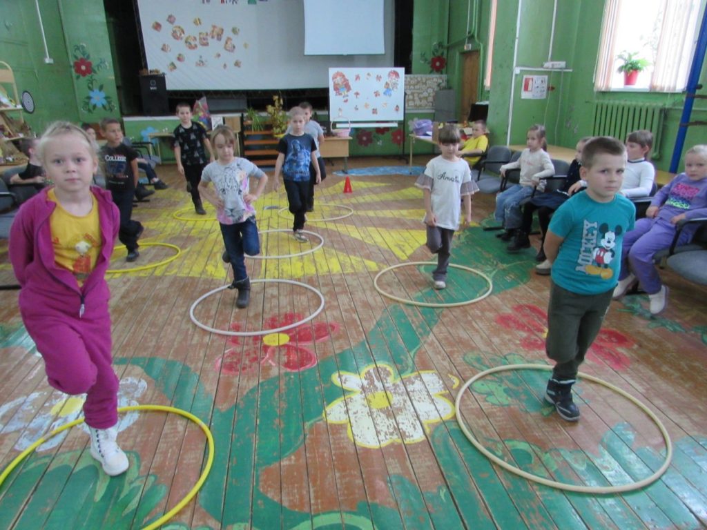 А потом педагог провела веселую спортивную программу. Это были непростые эстафеты, а «Зоологические забеги». Как известно, зоология – это наука, изучающая многообразие животного мира. В забегах принимали участие разные «животные»: зайчики, кенгуру, обезьянки, морской конек, пингвины, паучки, раки, гусеницы, белочки, лягушки, черепахи, змеи, носороги, быки, цапли… Дети, изображая их, прыгали, «ползали», скакали, бегали, «плавали», «бодались» …Интересно? Очень…Дети узнали много нового о «братьях наших меньших» и получили удовольствие от коллективных веселых игр и эстафет.